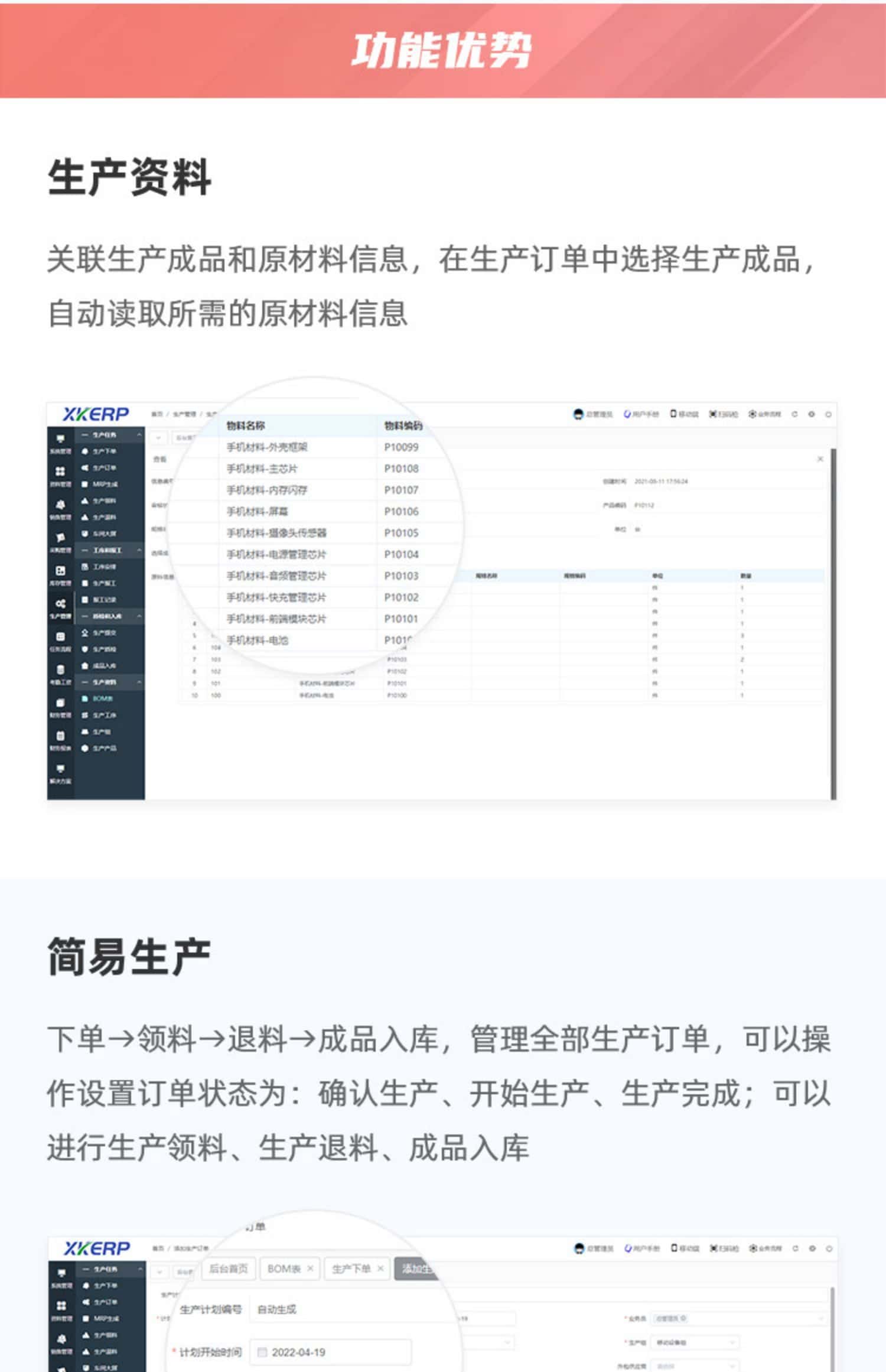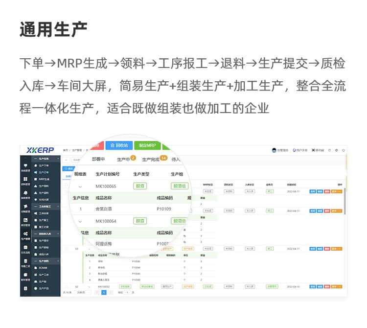 XK-ERP生产管理系统,能够帮助企业建立一个规范准确即时的生产数据库,同时实现轻松、规范、细致的生产业务库存业务一体化管理工作。提高管理效率、掌握及时、准确全面的生产动态,有效控制生产过程。适用于所有从事产品制造及有库存管理的企业。